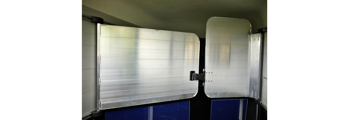 Aluminium Trennwand mit Kopftrennwand mit Leder Gurtel abschliessbar